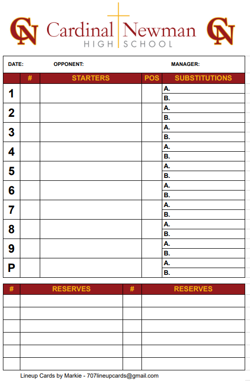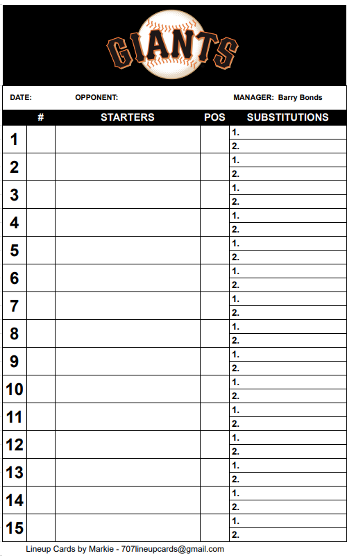 Customize your teams lineup cards with 707 Lineup Cards. Lineup cards can be customized with team logo and colors, including your Managers name at the top.